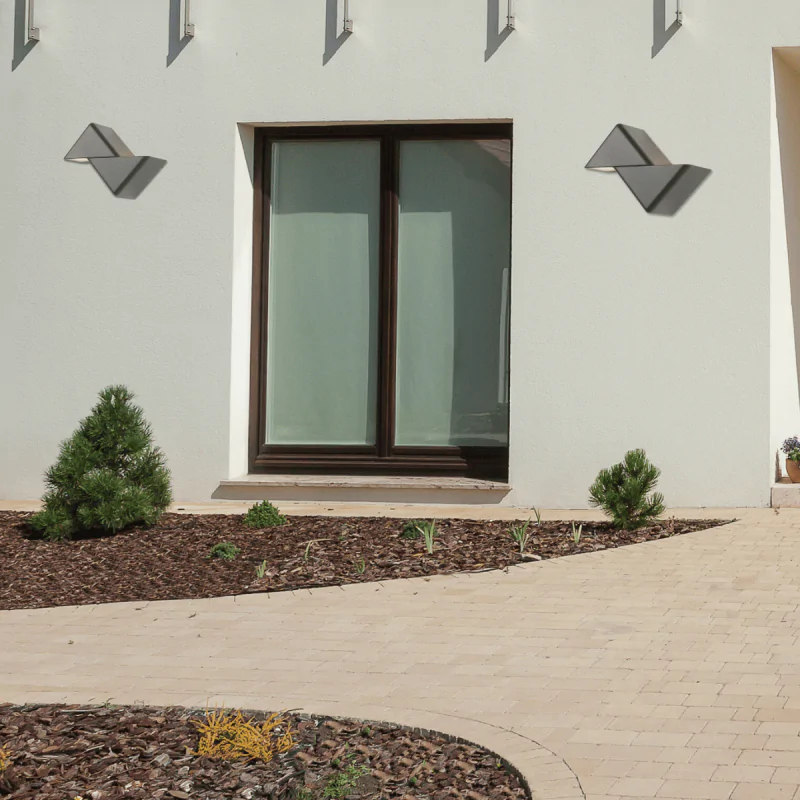 Ten nowoczesny kinkiet zewnętrzny łączy styl i funkcjonalność, oferując wyjątkowy design w kształcie dwóch trójkątów. To idealne rozwiązanie dla osób, które cenią eleganckie, a zarazem praktyczne oświetlenie elewacji. Jego minimalistyczny wygląd świetnie wpasowuje się zarówno w klasyczne, jak i nowoczesne aranżacje, dodając przestrzeni unikalnego charakteru.