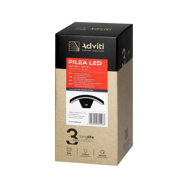- Typ: Lampa elewacyjna LED, kinkiet ogrodowy z czujnikiem ruchu
