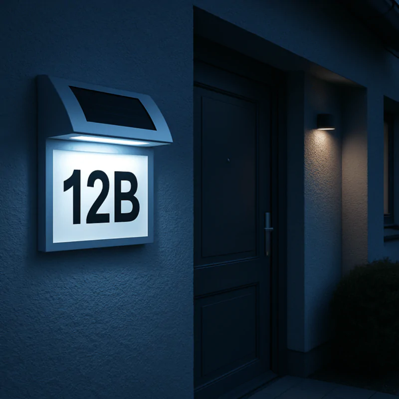 Lampa solarna LED ADRES to praktyczne i estetyczne rozwiązanie dla każdego, kto chce wyróżnić numer domu w sposób nowoczesny i energooszczędny. Dzięki zasilaniu solarnemu nie wymaga podłączenia do prądu, co czyni ją idealną opcją na elewację, ogrodzenie czy przy bramie. W dzień ładuje się automatycznie, a wieczorem sama się uruchamia, zapewniając widoczność adresu nawet po zmroku.