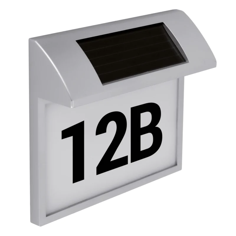Nowoczesna konstrukcja lampy łączy minimalistyczny design z odpornością na warunki atmosferyczne, dzięki klasie szczelności IP44. Jej neutralna, srebrna obudowa doskonale komponuje się z różnymi stylami architektonicznymi – od klasycznych domów po nowoczesne budynki. Podświetlany numer domu nie tylko zwiększa estetykę posesji, ale także poprawia bezpieczeństwo i widoczność dla gości, kurierów czy służb ratunkowych.