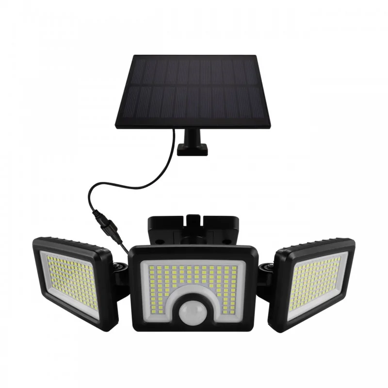 - Typ produktu: Lampa solarna LED z czujnikiem ruchu i zmierzchu - 3 głowice