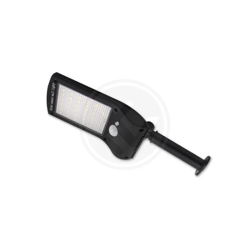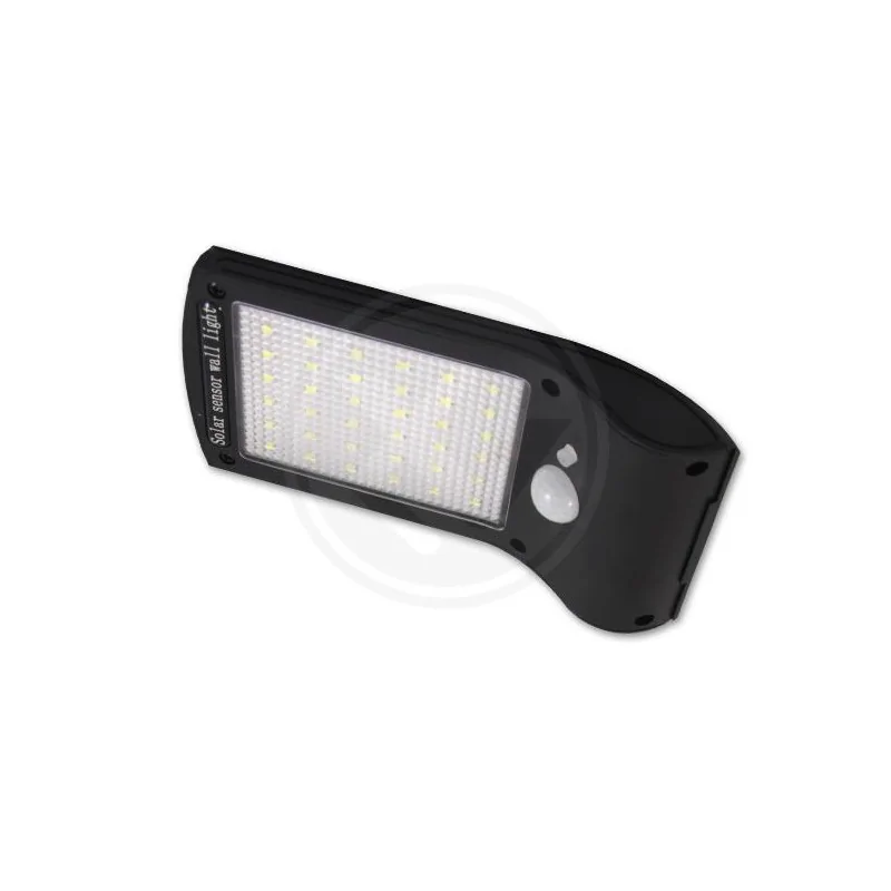 Naświetlacz solarny to oświetlenie, które ozdobi każdy budynek oraz pomoże zaoszczędzić Ci na rachunkach za energię elektryczną. Dodatkowo czarna lampa solarna wyposażona została w czujnik ruchu i zmierzchu. Prezentowany model oświetlenia doskonale nada się w miejscu, w którym nie ma dostępu do zasilania elektrycznego. Produkt świeci zimnym światłem o temperaturze barwowej 5500-6000K. Strumień świetlny kinkietu solarnego led równy jest 300 lumenów. Lampa wyposażona została w 36 diod led SMD. Ścienna lampa solarna idealna do montażu na elewacji budynków posiada w zestawie regulowany uchwyt o długości 15cm pozwalający zamontować oprawę od ściany. Ten solarny naświetlacz LED uruchamiamy wbudowanym w obudowę włącznikiem. Po zapadnięciu zmierzchu oprawa przechodzi w tryb czuwania i świeci delikatnym światłem (10% nominalnej jasności) natomiast po wykryciu ruchu rozświetla się pełną mocą na ok. 30 sekund.