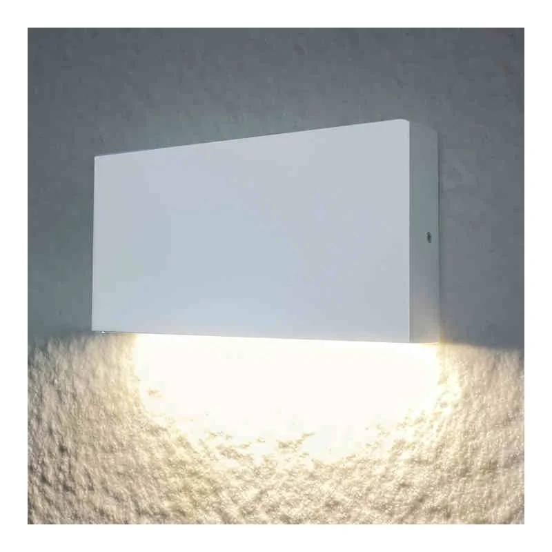 Biała lampa elewacyjna CHICAGO ze światłem led to energooszczędne oświetlenie ogrodowe z aluminiową obudową w kolorze białym. Kinkiet ścienny led świeci neutralnym białym światłem o temperaturze 4000K i strumieniu świetlnym na poziomie 450 lm. Moc źródeł światła w lampie ściennej wynosi 5,5W. Oświetleniowa oprawa dekoracyjna ze względu na klasyczny i minimalistyczny wygląd świetnie pasuje do każdego ogrodu czy ściany budynku. Kąt rozysyłu światła w ściennej lampie dekoracyjnej wynosi 110 stopni. W oprawie nie ma możliwości regulowania kierunku padania światła i możliwości wymiany źródła świata - (trwałość ok 25000 h). Produkt objęty jest 2 letnią gwarancją. Model CHICAGO występuje również w opcji z czarną obudową lub podświetleniem skierowanym góra-dół . Oprawa posiada podwyższony stopień szczelności IP44, dzięki czemu może być świetną wersją doświetlenia ścian, elewacji czy zaakcentowania donic w przydomowym ogrodzie czy tarasie. Wymiary oprawy to 29x85x170mm.