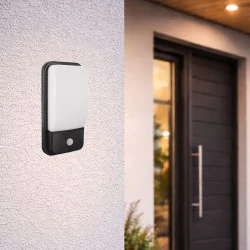 Lampa ścienna elewacyjna w czarnej obudowie PIR