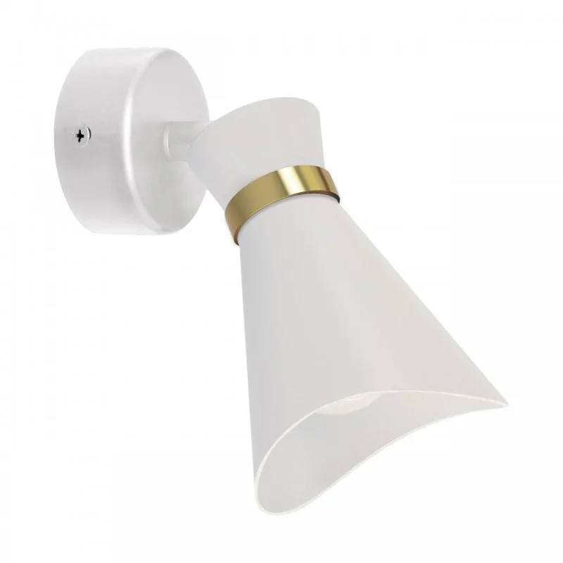Lampa 04218 LORETA producenta IDEUS, przystosowana jest zarówno do montażu sufitowego jak i ściennego. Klasyczna biała kolorystyka została ozdobiona złotym paskiem, dzięki czemu całość tworzy minimalistyczną ale nowoczesną konstrukcję. Ruchomy klosz pozwoli na skierowanie strumienia światła w odpowiednim kierunku. Dzięki czemu lampa świetnie nada się do oświetlenia obrazów lub jako dodatkowe źródło światła we wnętrzu. Należy zamontować żarówkę o gwincie E14 do max mocy 35W (brak w zestawie). Oświetlenie mierzy 19,5cm wysokości i 8,6cm szerokości. Polecamy zapoznać się z cała kolekcją LORETA.