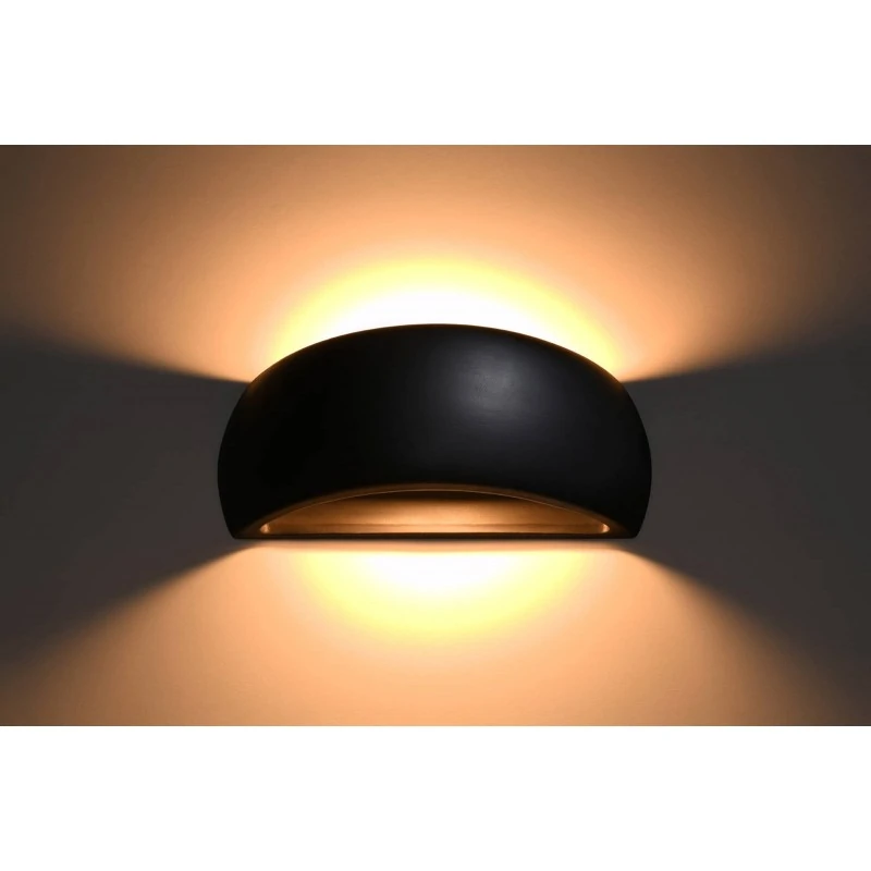 Czarny kinkiet ceramiczny Pontius marki Sollux lighting to piękne i nowoczesne oświetlenie naszego wnętrza. Lampa ścienna, która po zaświeceniu stworzy nam na ścianie piękną kompozycję rozpraszając światło góra-dół. Wymienne źródła światła o gwincie G9 pozwolą nam dobrać odpowiednią moc i barwę światła do naszych oczekiwań. Pamiętajmy, że żarówka nie została dołączona do zestawu. Kinkiet jest łatwy w utrzymaniu czystości, bo wystarczy nam przetarcie ściereczką. Natynkowy system montażowy to prosty sposób instalacji lampy ściennej. Polski produkt objęty 5-letnią gwarancją producenta.
