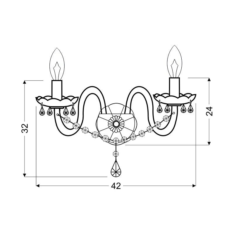 - materiał: podstawa stalowa, elementy ozdobne szklane, bez kloszy