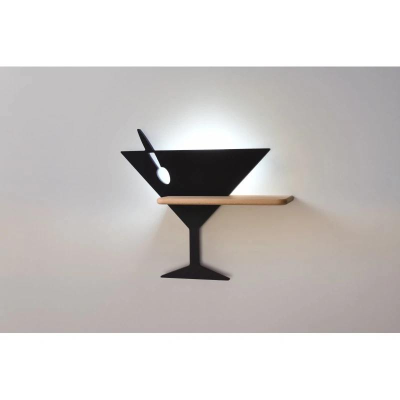 Oryginalna lampa ścienna KIDS 21-03577 marki Candellux, w kształcie kieliszka z łyżeczką, wyposażona została w półkę, wykonaną z drewna. Jest to unikatowa propozycja oświetleniowa, zarówno do pomieszczeń domowych, jak i restauracyjnych czy też hotelowych. Kinkiet ma wbudowany, energooszczędny LED, który emituje neutralną barwą świtała (4000K) oraz pobiera zaledwie moc 4W. Czarna podstawa wykonana jest z elementów stalowych i MDF. Wymiary wynoszą: 33cm wysokości i 37,5cm szerokości. Lampy z tej serii dostępne są w różnych kształtach i wymiarach. Produkt objęty gwarancją producenta.
