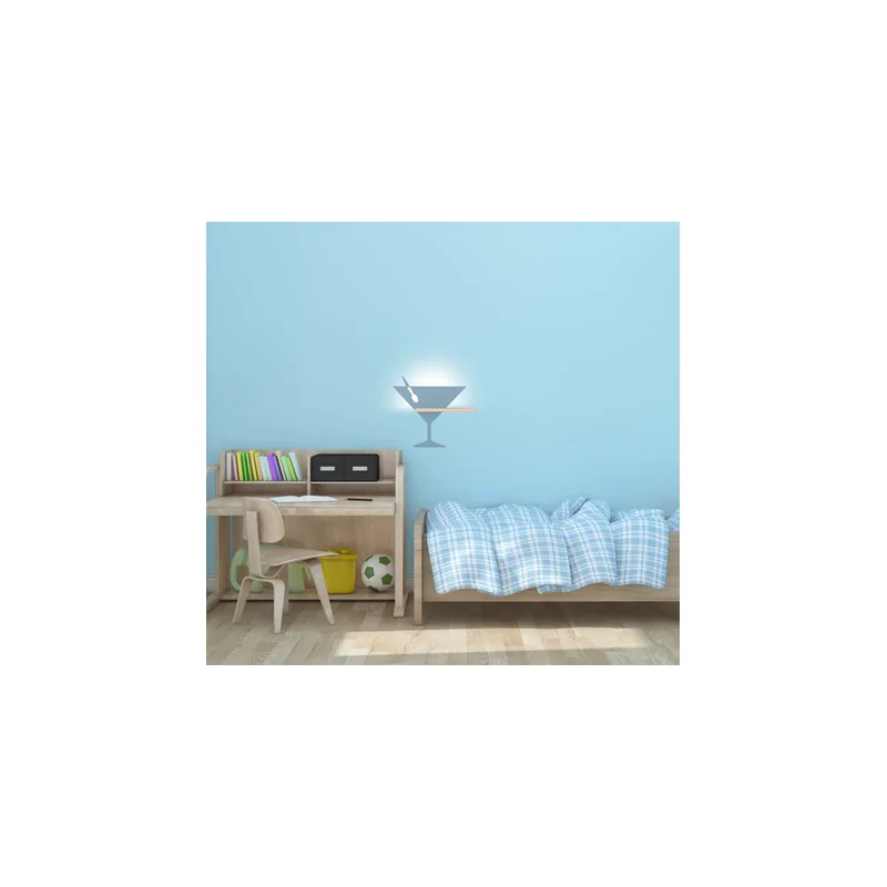 Oryginalna lampa ścienna KIDS 21-03560 marki Candellux, w kształcie kieliszka z łyżeczką, wyposażona została w półkę, wykonaną z drewna. Jest to unikatowa propozycja oświetleniowa, zarówno do pomieszczeń domowych, jak i restauracyjnych czy też hotelowych. Kinkiet ma wbudowany, energooszczędny LED, który emituje neutralną barwą świtała (4000K) oraz pobiera zaledwie moc 4W. Niebieska podstawa wykonana jest z elementów stalowych i MDF. Wymiary wynoszą: 33cm wysokości i 37,5cm szerokości. Lampy z tej serii dostępne są w różnych kształtach i wymiarach. Produkt objęty gwarancją producenta.