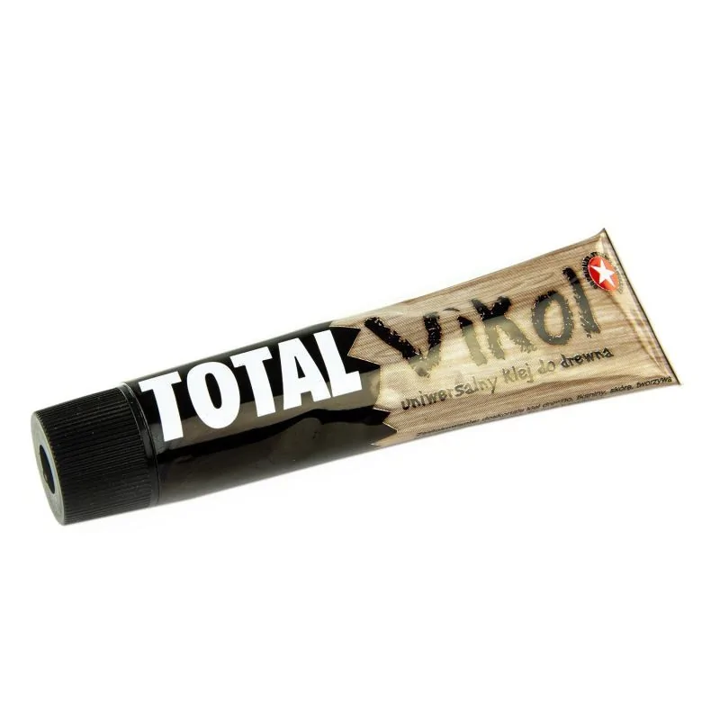 Uniwersalny klej TOTAL Vikol idealny do drewna, tkanin, skóry, tworzywa sztucznego i naturalnego, korki, filcu oraz papierów i kartonów. Klej po wyschnięciu staje się przeźroczysty i elastyczny dzięki czemu nie brudzi klejonego tworzywa. Przezroczysty klej jest bezpieczny i nietoksyczny. W jednej tubce znajduje się 40 gramów kleju.