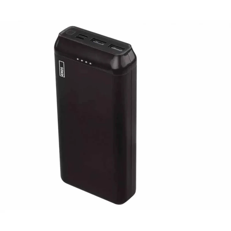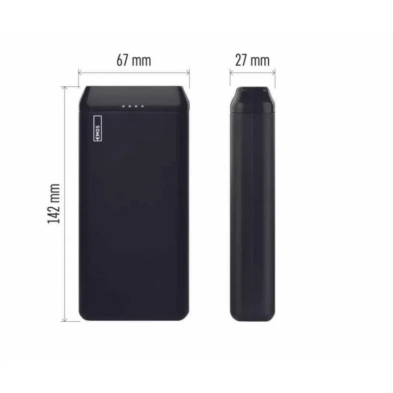 Czarny powerbank o pojemności 20000 mAh B0527B firmy Emos. Power bank z serii Alpha, wyposażony został w ogniwa litowo-polimerowe. Pojemność powerbanku 20000 mah wystarczy, aby naładować 4 krotnie telefon, lub jeden raz do pełna tablet. Niewielkie rozmiary, oraz niska waga, sprawiają że akumulator zmieści się do kieszeni, torebki lub plecaka w bagażu podręcznym. Power bank Alpha, posiada liczne zabezpieczenia, chroniące ładowane urządzenia, jak i sam akumulator.