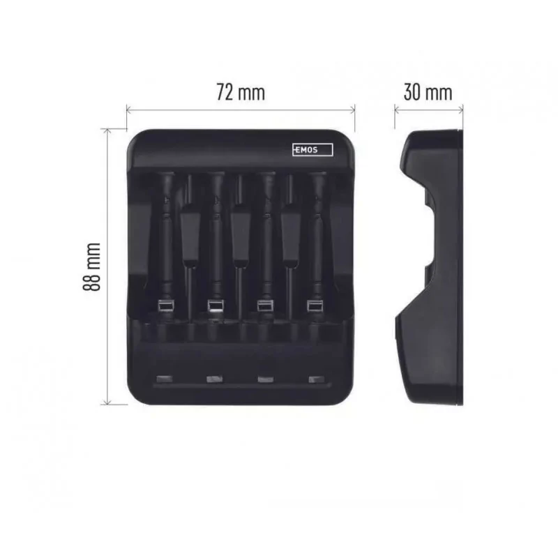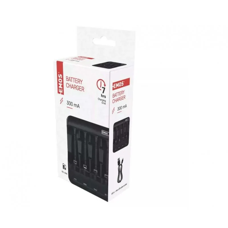Uniwersalna ładowarka do baterii AA, AAA, N9321 EMOS. Czarna ładowarka do baterii, przystosowana jest do ładowania ogniw NiMH. Urządzenie jednocześnie jest w stanie ładować 4 akumulatorki . Ładowarka podłączana jest za pomocą kabla USB. Produkt objęty jest gwarancją producenta.