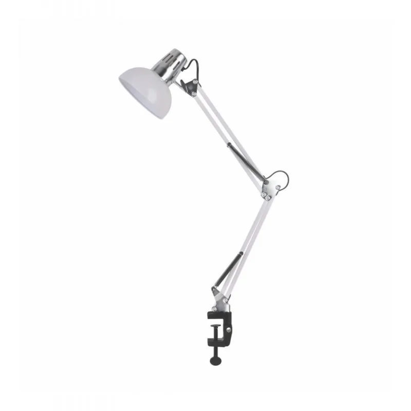 Lampka kreślarska biała z chromowanymi elementami i uchwytem E27 DAKOTA LS013 Nilsen