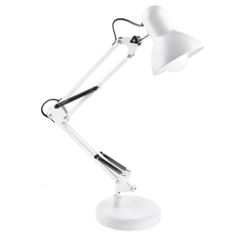 Kreślarska lampka na biurko TOBI marki LUMILED wyposażona została w uchwyt ułatwiający montaż do blatu. Prezentowany model lampki doskonale oświetli Twoje miejsce do pracy czy do nauki. Produkt posiada ruchome ramię oraz klosz, dzięki czemu skierujesz światło w dowolnym kierunku. Lampka w białym uniwersalnym kolorze łatwo dopasuje się do aranżacji oraz będzie doskonałym prezentem dla każdego. Dodatkowo sprzedawana jest bez źródła światła w zestawie, dlatego samodzielnie dobierzesz moc i barwę żarówki E27 do własnych potrzeb. Dedykowane źródło światła lampki biurkowej nie powinno przekraczać mocy 12W. Lampka TOBI dostępna jest również w innych kolorach.