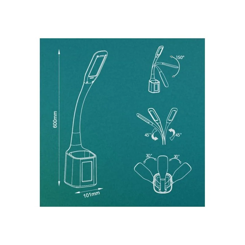 Biała lampka led na biurko z przybornikiem i funkcją zegarka 6W 5500K HG014 EMMA NILSEN