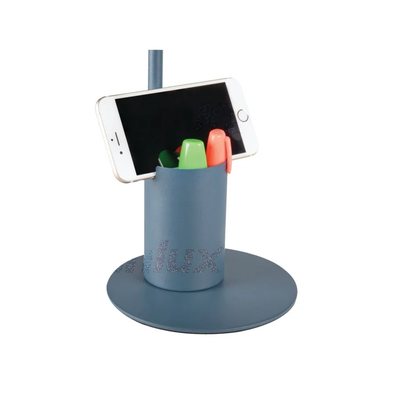Lampka na biurkowa 36282 RAIBO marki KANLUX, wykonana w oryginalnym niebieskim kolorze, inspirowana stylem retro. W podstawie wbudowany jest organizer z uchwytem, w który możemy odłożyć telefon, długopisy czy okulary. Ruchomy klosz w zakresie 190 stopni, posiada szeroki rozbłysk światła. Oświetlenie stołowe przystosowana jest na żarówkę o gwincie E27 (brak w zestawie). Cała konstrukcja jest wytrzymała i stabilna, ponieważ pod spodem umieszczona została pianka. Ten model lampki dostępnych jest w 6 różnych kolorach.
