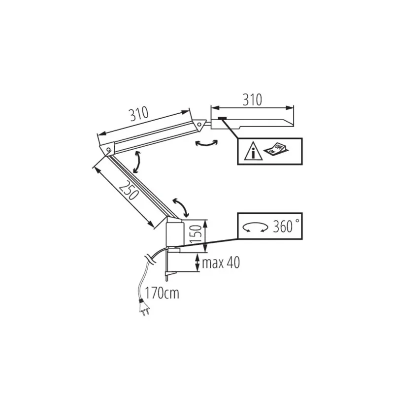 Lampa biurkowa LED z kolekcji HERON marki KANLUX, małym użyciem mocy, ale o dużym strumieniu świetlnym. Wyróżnia ją przede wszystkim ponadprzeciętna możliwość regulacji padania strumienia światła, a to dzięki jej regulowanym przegubom- mamy swobodną możliwość obrotu ramienia lampki. Oświetlenie stołowe ma wyłącznik umieszczony na kloszu oraz zacisk, który pozwala przytwierdzić podstawę do krawędzi blatu lub półki. Lampka posiada wbudowane źródło światła LED o mocy 4,8W o przyjemnej neutralnej barwie światła. Cieszy się zainteresowaniem osób, które cenią sobie nowoczesny, surowy design. Sprawdzi się na biurku ucznia, studenta, a także przy wymagającej oświetlenia pracy. Prezentowany model lampki dostępny jest również w kolorze białym.