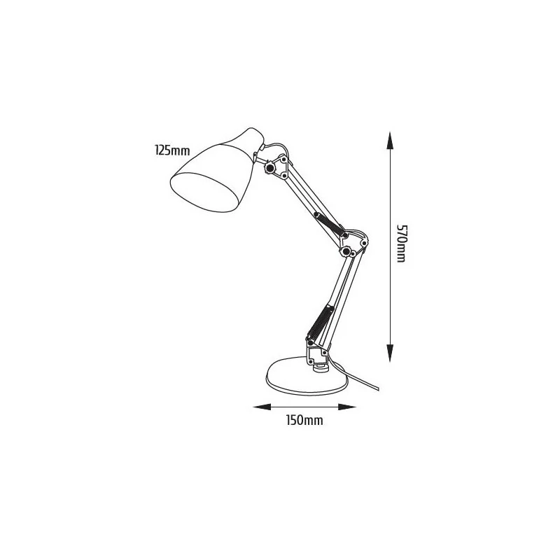 Elegancka lampka biurkowa kreślarska FN018 LILLY marki NILSEN to świetne rozwiązanie do biura, które sprzedawane jest bez źródła światła w zestawie. Czarny kolor bez problemu wkomponuje się w każde wnętrze. Dedykowanym źródłem światła jest żarówka z trzonkiem E27 o maksymalnej mocy do 40W. Produkt posiada regulowane ramię oraz ruchomą główkę, co pozwala na skierowanie światła w dowolnym kierunku. Lampka biurkowa w kolorze czarnym posiada przewód o długości 230 cm, na którym znajduje się włącznik on/off. Lampka na biurko jest o wymiarach: wysokość- 570 mm, szerokość- 150 mm.