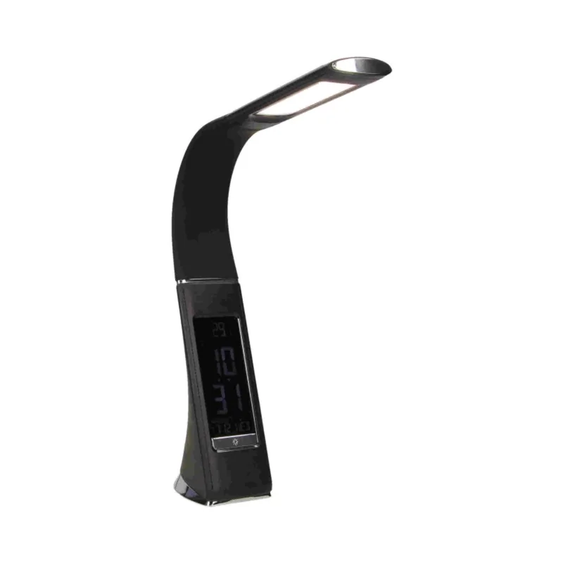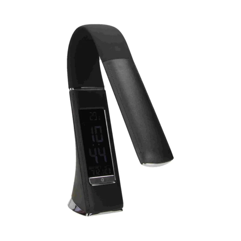 Lampka biurkowa OR-LB-1533/B DOLOMI,T LED z elastycznym, regulowanym ramieniem, które umożliwia wygodną regulację kierunku świecenia. Wyświetlacz LCD posiada wbudowany zegar z budzikiem, 8 dźwięków alarmu, kalendarz i termometr. Dotykowy przycisk sterujący oraz funkcja ściemniania (3 stopniowa regulacja intensywności świecenia). Oświetlenie marki ORNO, ma wbudowane źródło światła LED, które jest energooszczędne, pobiera moc 6W oraz świeci neutralną barwą światła równą 4000K. Ten model dostępny jest w kolorze czarnym i brązowym.