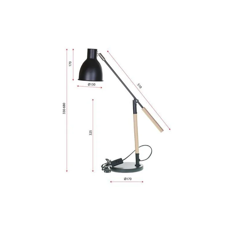 Lampka na biurko czarna drewno metal E27