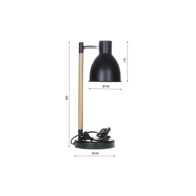 Czarna lampka na biurko z drewnianą wstawką loft E27 HD1707 Rum-Lux