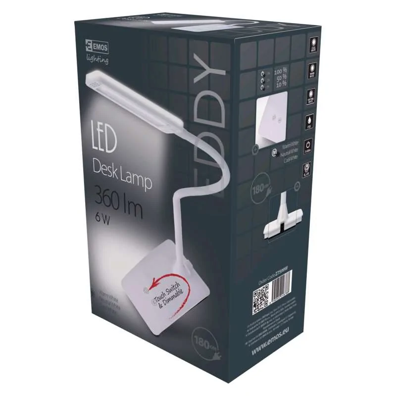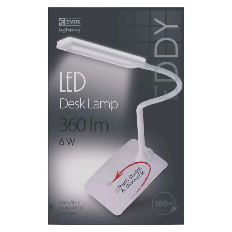 Lampa biurkowa LED EDDY biała 6W ściemnialna 3 barwy światła Z7599W EMOS