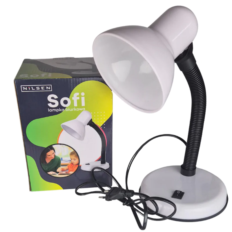 Lampka biurkowa biała na wymienną żarówkę regulowane ramię SOFI