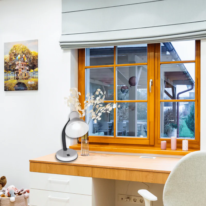 Ważnym atutem lampki jest możliwość pełnej personalizacji źródła światła. Dzięki kompatybilności z żarówkami o trzonku E27, można dostosować zarówno barwę, jak i moc oświetlenia do indywidualnych potrzeb dziecka. Niezależnie od tego, czy preferujesz ciepłe, relaksujące światło, czy jasne, sprzyjające koncentracji – lampka biurkowa dla dzieci INQ spełni Twoje oczekiwania, tworząc idealne warunki do nauki i zabawy.