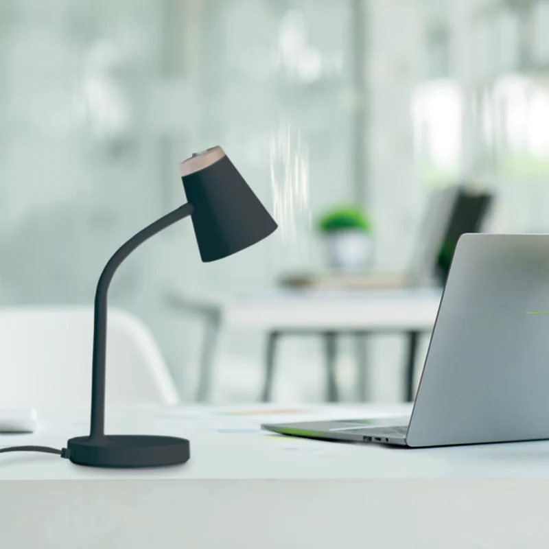 Elegancki i uniwersalny design – Klasyczna czarna kolorystyka sprawia, że lampa pasuje do każdego wnętrza – biura, gabinetu czy sypialni.