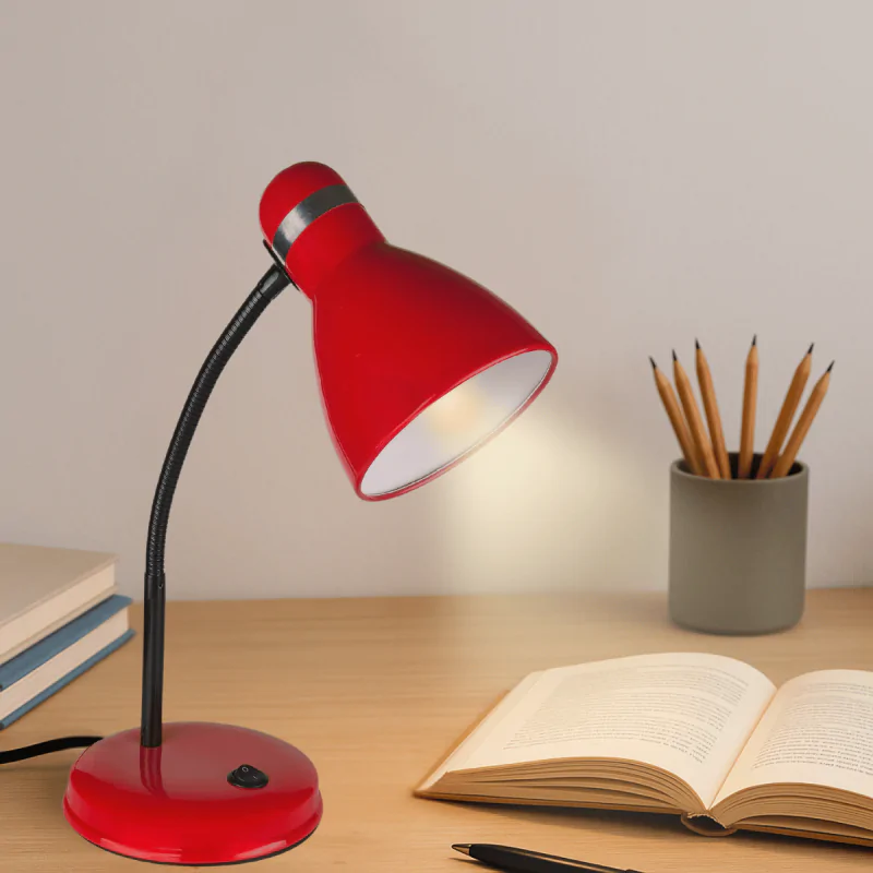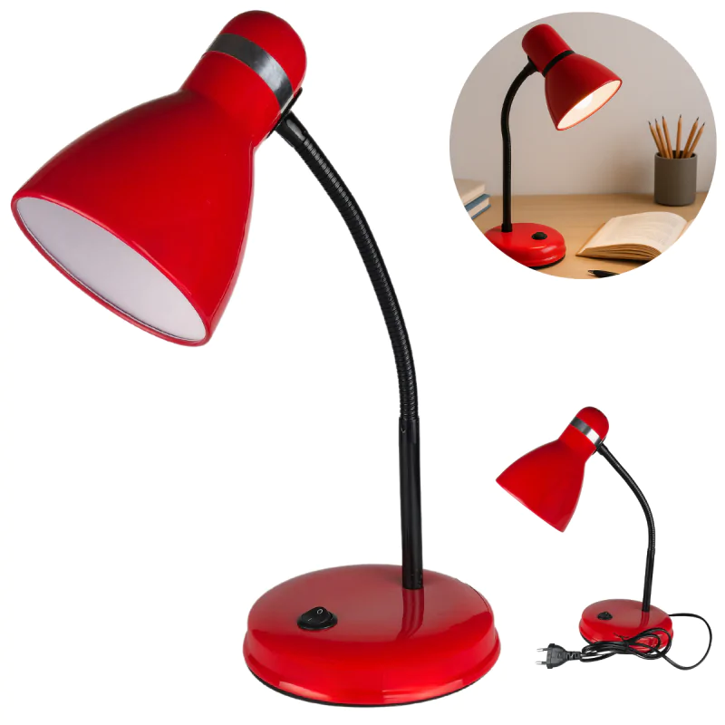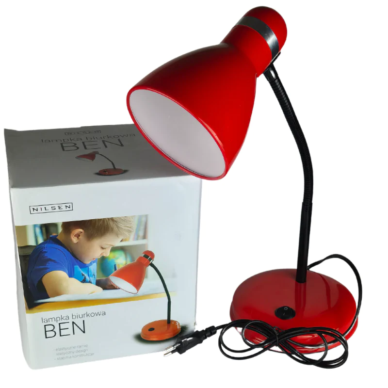 Lampka biurkowa klasyczna do pokoju ucznia Czerwona do nauki E27 BEN FN020 NILSEN