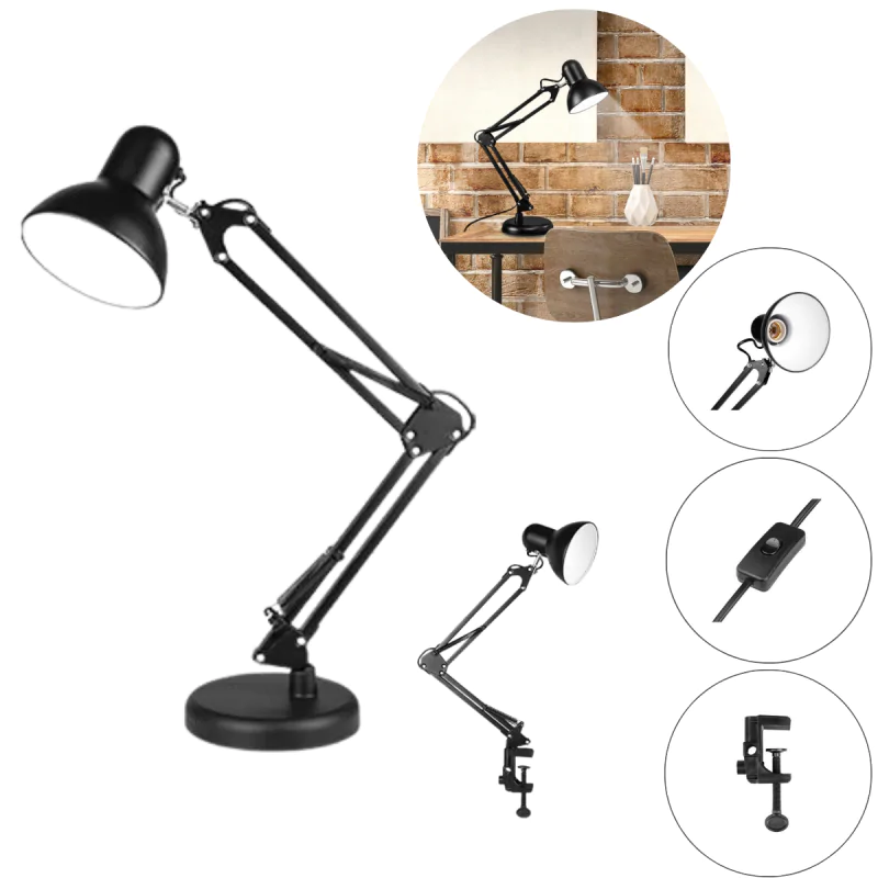 Lampka biurkowa kreślarska czarna do pracy i nauki na żarówkę E27 LENA 1087 LVT