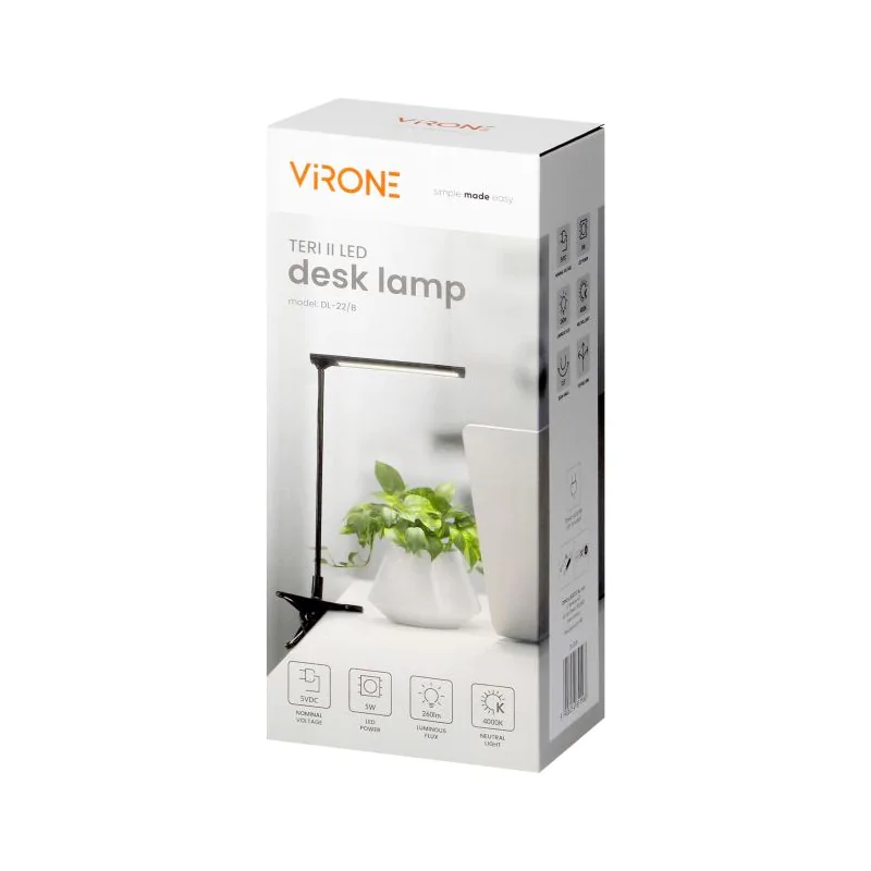 Lampka biurkowa z klipsem TERI II LED to doskonałe rozwiązanie oświetleniowe do wnętrz, takich jak biuro, pokój dziecka czy nastolatka. Dzięki możliwości montażu na klipsie, nie zajmuje dużo miejsca na blacie, a pozostawia więcej przestrzeni roboczej.