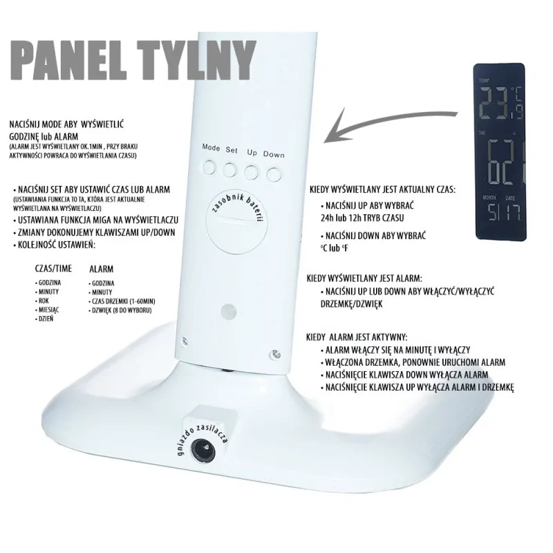 Lampka biurkowa LED z wyświetlaczem, zegar, termometr, budzik HD1408S 94052040 RUM-LUX