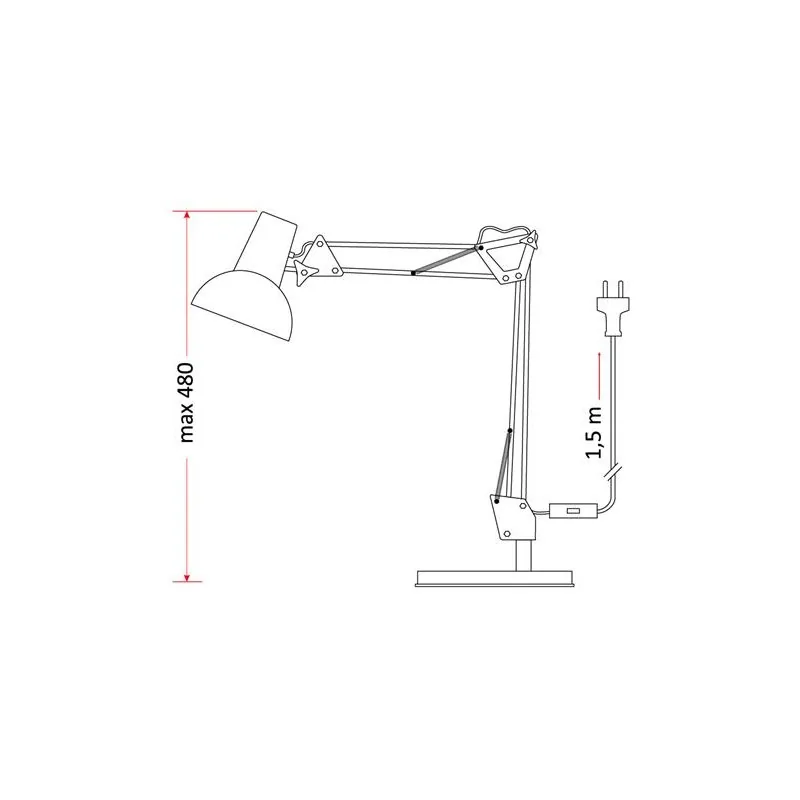 Praktyczna i wygodna lampka LB/0212, na każde biurko jest propozycją oświetleniową od marki RUM-LUX. Wyłącznik umieszczony jest na przewodzie, który mierzy 1,5 metra. Istnieje możliwość regulacji wysokości lampki oraz kąta świecenia, dzięki elastycznym rumienią, które ułatwiają użytkowanie. Całość wykonana jest z metalu w klasycznym czarnym kolorze. Lampka kreślarska przystosowana jest na żarówkę o trzonku E27 do max mocy 40W (brak w zestawie). Duży wybór kolorów daje możliwość dopasowania lampki do każdego wnętrza.