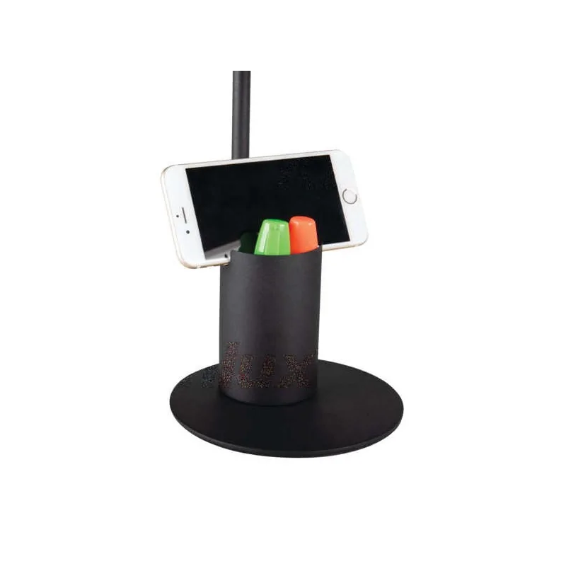 Lampka biurkowa 36280 z kolekcji RAIBO marki KANLUX, to modne oświetlenie wykonane w stylu retro. W podstawie wbudowany jest organizer z uchwytem, w który możemy odłożyć telefon, długopisy czy okulary. Duży klosz który możemy ustawić w dowolnym kierunku, zmieści żarówkę o trzonku E27 to szeroki rozsył światła. Widoczny jest tu wpływ retro, ale również dbałość o szczegóły i solidne wykonanie (stal). Lampa stołowa mierzy 38cm wysokość i 15cm szerokości. Zwróciliśmy też uwagę na spód lampki i dodaliśmy piankową podkładkę, aby lampka nie rysowała biurka. Dostępna jest w 4 pastelowych kolorach, jak i w popularnej czerni i bieli.