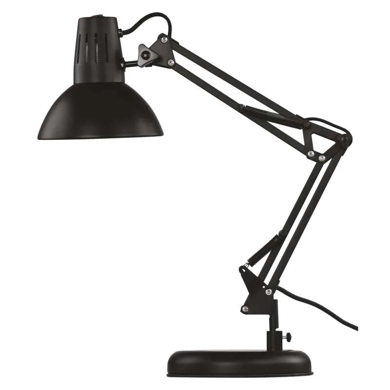 Czarna lampka biurkowa DUSTIN EMOS wykonana z najwyższej jakości materiałów- odpornego metalu to nowoczesne oświetlenie do biura i domu. Lampka kreślarska 46cm wrowadzi do Twojego wnętrza nowoczesny design. Do stylowej lampki w stylu industrialnym pasują żarówki z gwintem E27 do maksymalnej mocy 25W- brak w zestawie. Lampka posiada przewód zasilający o długości 150 cm. Wymiary lampki to 460 × 185 × 455 mm. Model dostępny jest także w białej wersji kolorystycznej. Lampka DUSTIN może być świetnym oświetleniem na biurko, stolik roboczy czy jako wyposażenie pracowni czy biura.