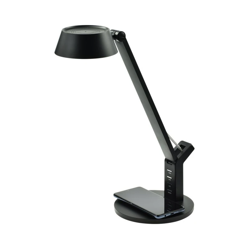 Lampka biurkowa LEO producenta NILSEN to urządzenie, które zachwyci miłośników wielofunkcyjnych rozwiązań. Lampka poza funkcją świecenia posiada również funkcję wireless czyli bezprzewodowego ładowania telefonów. Wystarczy położyć telefon w polu ładowania, aby proces ładowania rozpoczął się. Dla telefonów, które nie posiadają tej funkcji wystarczy zakupić specjalny adapter Qi, który stworzy taką możliwość. Lampka biurkowa Leo o mocy 8W wyposażona jest w regulację jasności oraz 3 barwy światła: ciepłą, neutralną, zimną. Funkcje te pozwalają dopasować światło do naszej aktywności. Barwa ciepła idealnie sprawdzi się podczas odpoczynku, barwę neutralną wykorzystasz w czasie czytania książki. Barwa zimna świetnie sprawdzi się, gdy pracujesz, sprzyja bowiem zachowaniu koncentracji. Inteligentny panel zapamiętywania ustawień pozwala zachować parametry lampki po jej ponownym uruchomieniu. Dotykowy panel umieszczony w dolnej części ramienia lampki, pozwala na szybkie i wygodne uruchomienie lampki. Lampka biurkowa Leo posiada ruchomą regulację ramienia do 65° oraz pełną regulację główki lampki, funkcje te pozwalają na dopasowanie kąta padania światła i skierowanie go w pożądanym kierunku. Lampkę wyróżnia ciekawy design i nowoczesna konstrukcja, która pasować będzie do wielu rozwiązań aranżacyjnych.