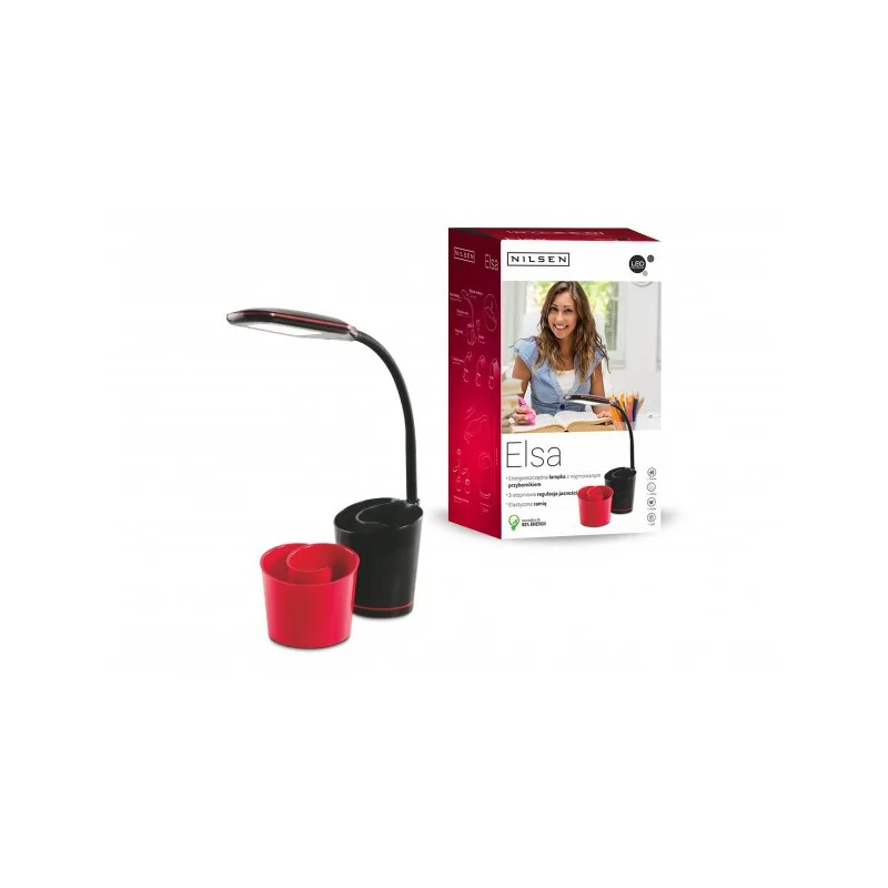 Lampka led na biurko czarno-czerwona z przybornikiem Elsa PX037E Nilsen