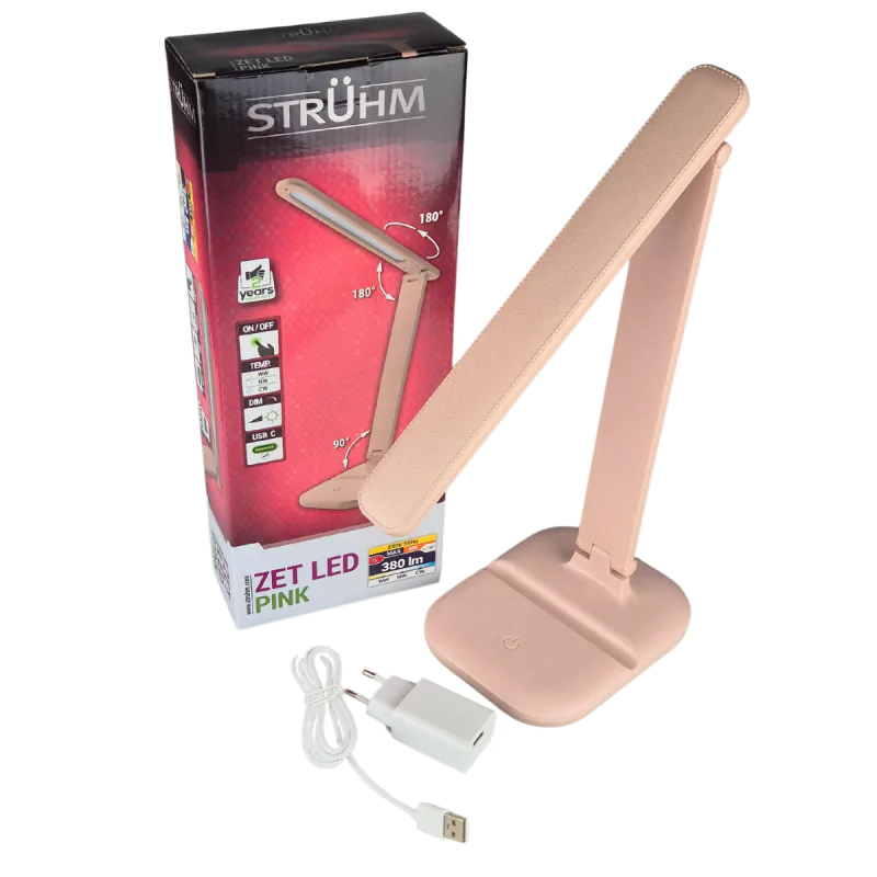 Lampka biurkowa LED w kolorze różowym ZET PINK to połączenie nowoczesnego wzornictwa i praktycznych rozwiązań, stworzonych z myślą o codziennym komforcie. Jej delikatny pastelowy odcień doskonale wpisuje się w dziewczęce i minimalistyczne wnętrza, dodając im lekkości oraz subtelnego uroku. Świetnie sprawdzi się jako uzupełnienie biurka uczennicy, studenckiego kącika do nauki czy stanowiska do pracy zdalnej.