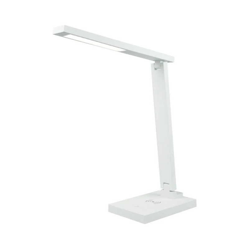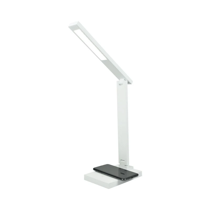 Lampka biurkowa LED SARA firmy NILSEN, to innowacyjne urządzenie, które łączy w sobie funkcje świecenia i ładowania telefonów. Pozwala na to tradycyjne złącze USB oraz ładowarka indukcyjna wbudowana w podstawę lampki. Wystarczy umieścić telefon w polu ładowarki, aby proces ładowania rozpoczął się. Lampa na biurko Sara posiada dwa ruchome ramiona, które umożliwiają ustawienie pożądanego kąta padania światła. Mleczny klosz ładnie rozprasza światło a neutralna barwa światła jest uniwersalna w zastosowaniu, nadaje się zarówno do pracy, jak i do aktywnego wypoczynku. Lampka o mocy 5W wyposażona jest w regulację natężenia światła, która pozwala na ustawienie odpowiedniego stopnia jasności. Dotykowy panel sterujący zapewnia komfort użytkowania i sprawne uruchomienie lampki. Lampkę biurkową Sara wyróżnia prosta i minimalistyczna konstrukcja, która świetnie będzie współgrać z nowoczesnymi elementami wnętrza. Dostępna jest również w kolorze czarnym.