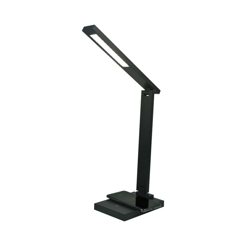 Lampka biurkowa LED SARA producent NILSEN, to wielofunkcyjne urządzenie, które poza funkcją świecenia sprawdzi się również jako ładowarka do telefonu. Pozwala na to tradycyjne złącze USB oraz ładowarka indukcyjna wbudowana w podstawę lampki. Wystarczy położyć telefon w polu ładowarki, aby proces ładowania rozpoczął się. Dwa ruchome ramiona umożliwiają ustawienie odpowiedniego kąta padania światła. Neutralna barwa światła sprawdzi się zarówno podczas pracy, jak i aktywnego wypoczynku. Lampka wyposażona jest w funkcję regulacji natężenia światła, która umożliwia dopasowanie jasności do własnych potrzeb. Atutem lampki jest dotykowy panel umiejscowiony w podstawie lampki, pozwala on na szybkie uruchomienie lampki i zmianę funkcji. Lampkę biurkową SARA wyróżnia prosta, minimalistyczna konstrukcja, która pasować będzie do wielu nowocześnie urządzonych wnętrz. Czarny kolor podkreśli charakter pomieszczenia. Ten model lampki dostępny jest także w kolorze białym.