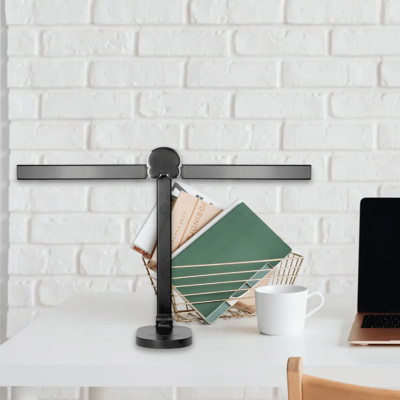 - Dwa regulowane ramiona: Możliwość precyzyjnego ustawienia kierunku światła ułatwia dopasowanie oświetlenia do pracy lub nauki.