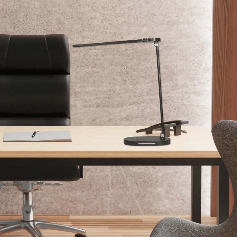 - Antypoślizgowa podstawa: Stabilna konstrukcja gwarantuje pewne ustawienie na biurku, zapobiegając przypadkowemu przesuwaniu się lampki.