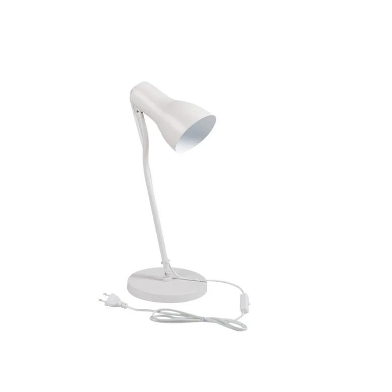 Lampka stołowa z kolekcji JUSI producenta KANLUX, z powodzeniem może być wykorzystywana jako lampa biurkowa, nocna, lub jako dodatkowe oświetlenie pomieszczeń. Design tej lampki jest tak uniwersalny, że idealnie wpasuje się zarówno do pokoju młodzieżowego jak i do salonu czy sypialni. Sami decydujemy o mocy światła i jego barwie, a tu mamy bardzo szerokie możliwości, bo do lampki pasują żarówki o trzonku E27. Stalowa obudowa i włącznik zamontowany na przewodzie zasilającym to jej dodatkowe atuty. Nowością jest możliwość wychylenia ramienia względem podstawy o 40 stopni, sam klosz wychylimy dodatkowo o 180 stopni. Ten model lampki dostępny jest również w kolorze czarnym.