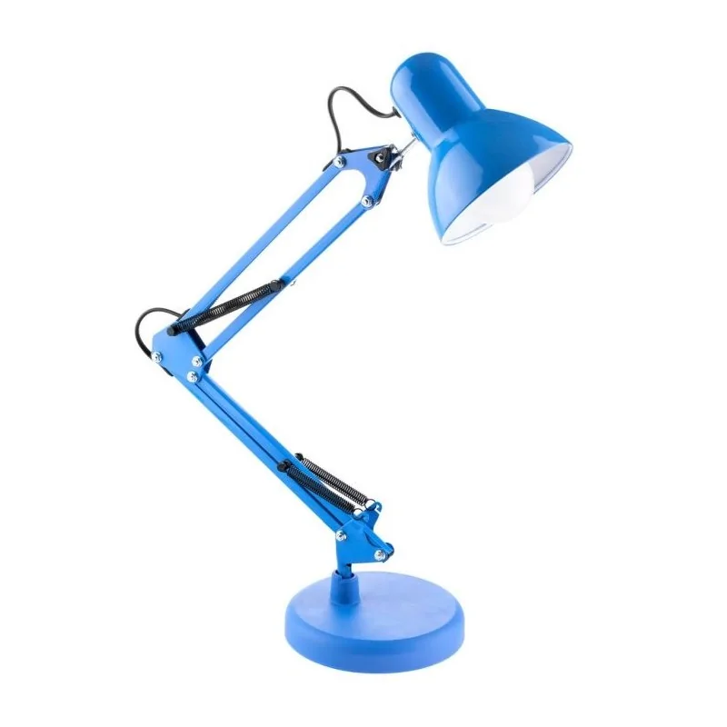 Kreślarska lampka na biurko TOBI marki LUMILED wyposażona została w uchwyt ułatwiający montaż do blatu. Prezentowany model lampki doskonale oświetli Twoje miejsce do pracy czy do nauki. Produkt posiada ruchome ramię oraz klosz, dzięki czemu skierujesz światło w dowolnym kierunku. Niebieska lampka będzie świetnym prezentem urodzinowym lub z okazji Dnia Dziecka dla każdego chłopca. Dodatkowo sprzedawana jest bez źródła światła w zestawie, dlatego samodzielnie dobierzesz moc i barwę żarówki E27 do własnych potrzeb. Dedykowane źródło światła lampki biurkowej nie powinno przekraczać mocy 12W. Lampka TOBI dostępna jest również w innych kolorach.