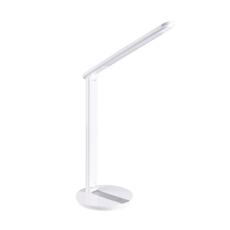 Nowoczesna lampka biurkowa składana SERRA 9W posiada wbudowane energooszczędne źródło światła LED o mocy 9W świecące białym światłem w 3 barwach: ciepłej, neutralnej i zimnej. Poziomy jasności zmieniane są za pomocą dotykowego włącznika umieszczonego w podstawie. Jest to energooszczędne rozwiązanie oświetleniowe z diodami led o żywotności 25 000 godzin i minimum 12500 cykli on/off. Regulowane zginane ramię pozwala na kierowanie światła w dowolnie wybrane miejsce oraz na oszczędność miejsca po jej złożeniu. Lampka biurkowa wykonana została z białego tworzywa sztucznego. Produkt objęty 2-letnią gwarancją producenta. Wymiary produktu to 165x385mm. Model występuje także w wersji czarnej.