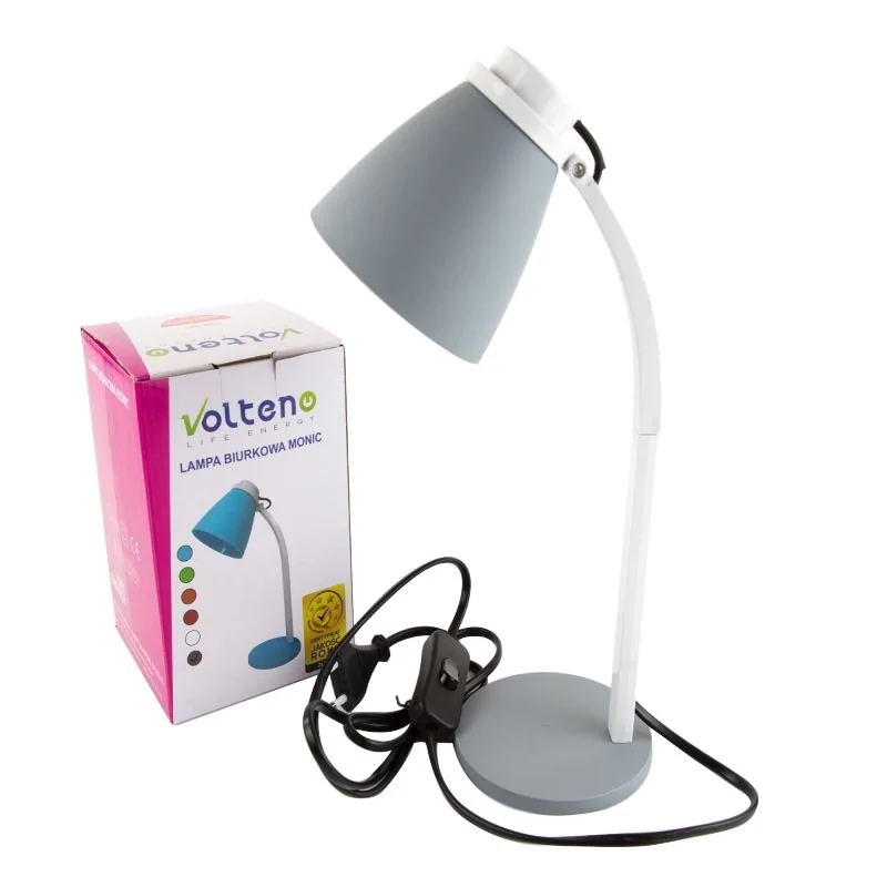Szara lampka biurkowa Volteno Monic E14 VO0792 VOLTENO