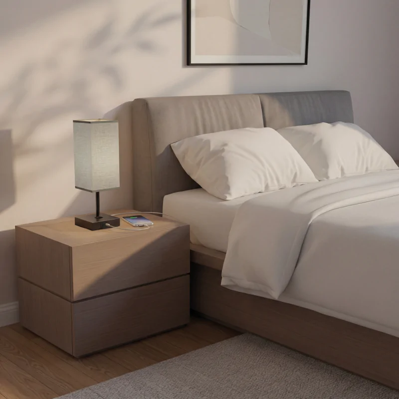 Lampka nocna do sypialni z szarym abażurem