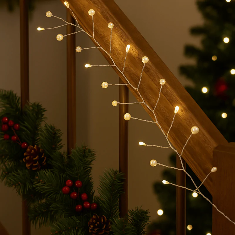 Perłowy design girlandy zachwyca subtelnym blaskiem i elegancją, doskonale komponując się z klasycznymi oraz nowoczesnymi aranżacjami. Lekka konstrukcja umożliwia szybki montaż i zmianę dekoracji w dowolnym momencie. To stylowa ozdoba świąteczna, która podkreśli świąteczny klimat i sprawi, że wnętrze nabierze wyjątkowego, ciepłego uroku.
