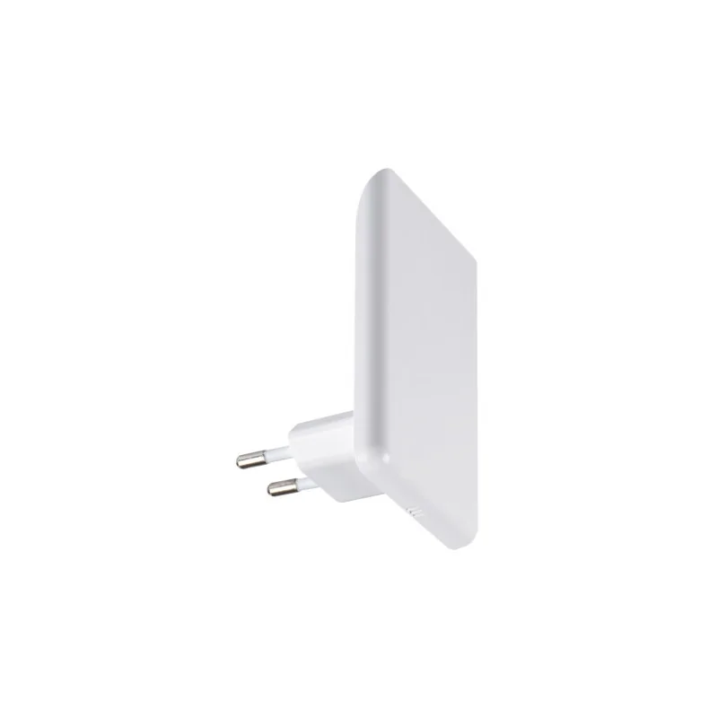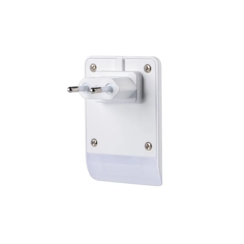 Lampka nocna firmy Kanlux o prostokątnej bryle służy do dyskretnego oświetlenia mieszkania. Dzięki niewielkiemu poborowi mocy lampka do kontaktu jest bardzo funkcjonalna i energooszczędna. Idealnie sprawdzi się do podświetlenia ciemnego korytarza, sypialni dodając jej romantycznego charakteru czy pokoju dziecka dodając maluchowi poczucia bezpieczeństwa. Oprócz funkcjonalnych możliwości oświetleniowych lampka wtyczkowa do gniazdka jest również doskonałą dekoracją lub idealnym drobnym upominkiem. Lampa świeci delikatnie ciepłym światłem z mocą do 0,28W i strumieniem świetlnym na poziomie 5lm. Biała lampka do kontaktu posiada czujnik zmierzchu, może być montowana w górę lub dół ( świeci tylną powierzchnią).